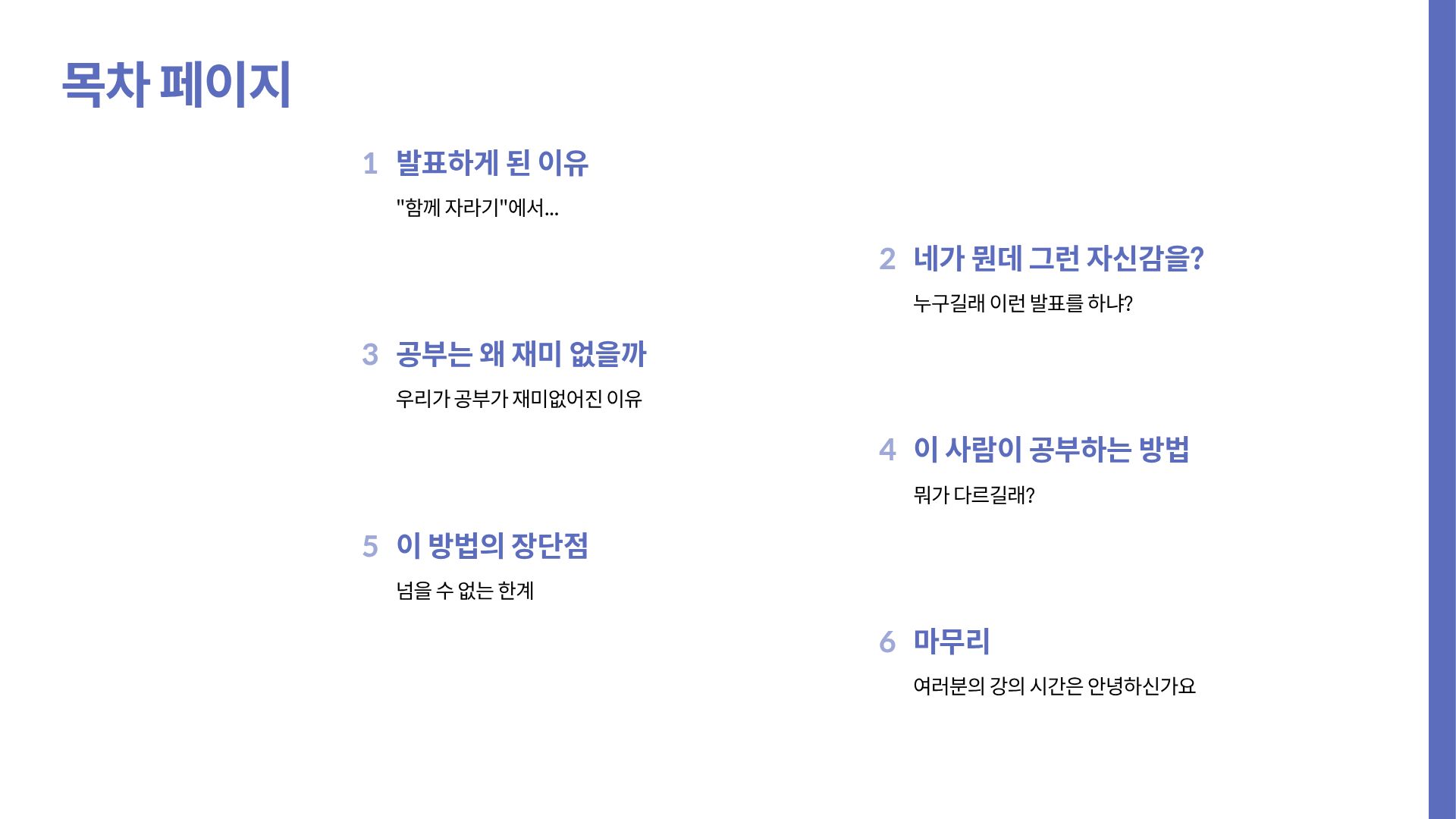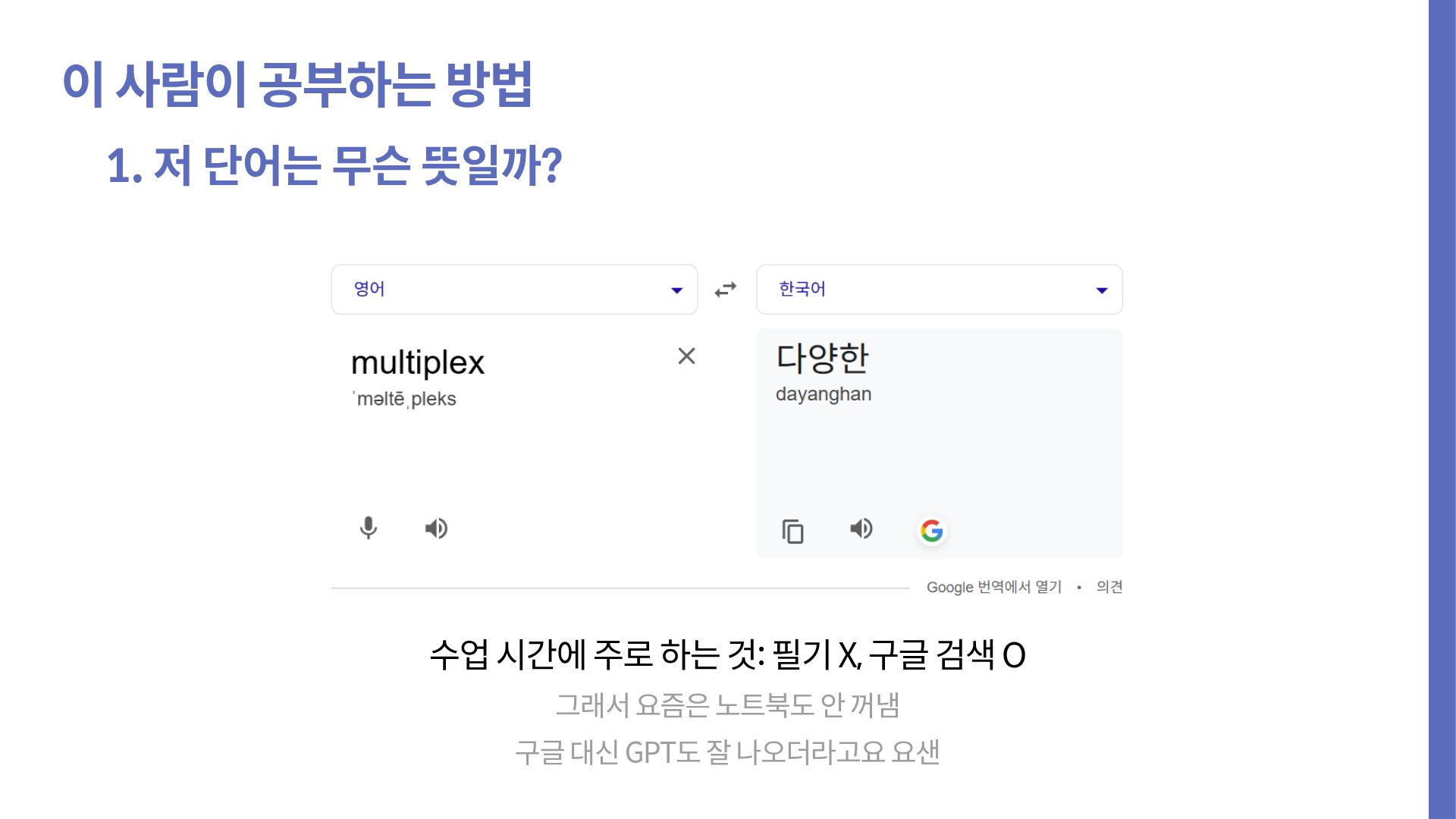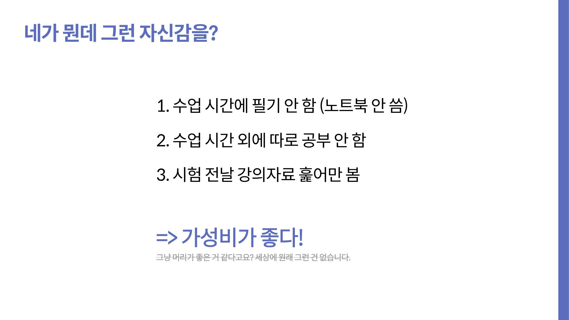 - 수업 시간 외에 공부하지 않는다.